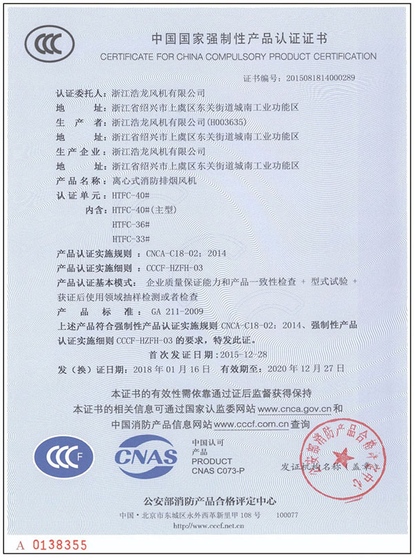 浙江浩龍風(fēng)機(jī)有限公司坐落于“中國(guó)風(fēng)機(jī)之鄉(xiāng)”浙江省上虞區(qū)東關(guān)街道城南工業(yè)功能區(qū),距上三高速入口.104國(guó)道1000米,處于上虞交通中心區(qū)域,地理位置十分優(yōu)越。企業(yè)注冊(cè)資金5700萬(wàn)元人民幣,生產(chǎn)用地72畝,是一家專(zhuān)業(yè)研發(fā)、設(shè)計(jì)、制造風(fēng)機(jī)、屋頂風(fēng)機(jī)、隧道風(fēng)機(jī)、防火排煙閥門(mén)、消防3C認(rèn)證風(fēng)機(jī)、排煙閥、防火閥、消聲器、靜壓箱、控制系統(tǒng)等暖通成套設(shè)備并且提供專(zhuān)業(yè)售后服務(wù)的行業(yè)骨干企業(yè),3C風(fēng)機(jī)廠(chǎng)家。具有年產(chǎn)五萬(wàn)套各類(lèi)風(fēng)機(jī),十萬(wàn)套防火,消聲設(shè)備的能力。